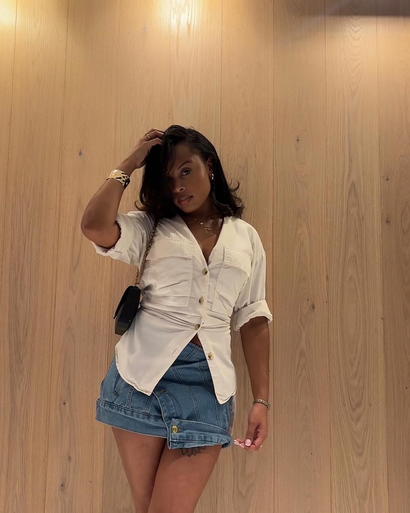 A Cupid’s Bow Denim Mini Skirt
