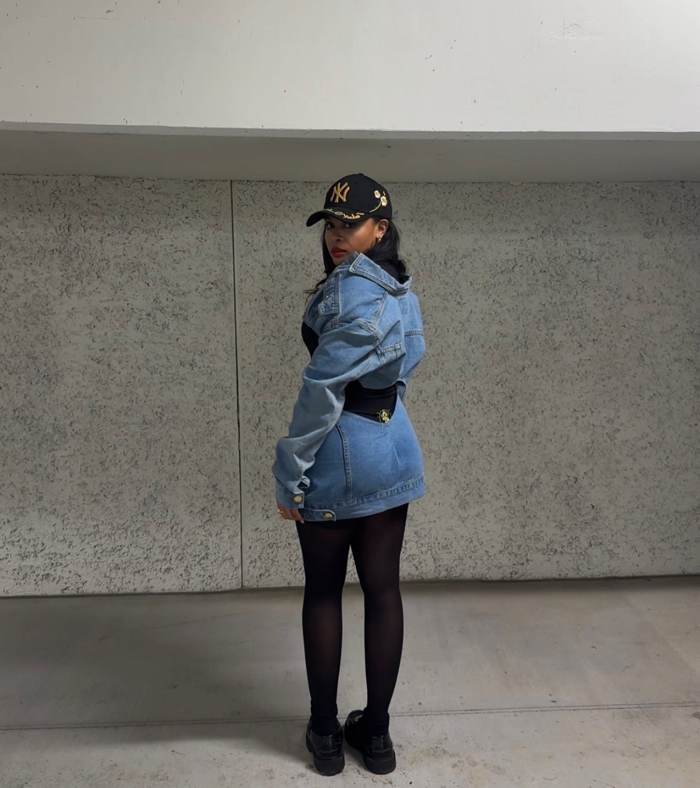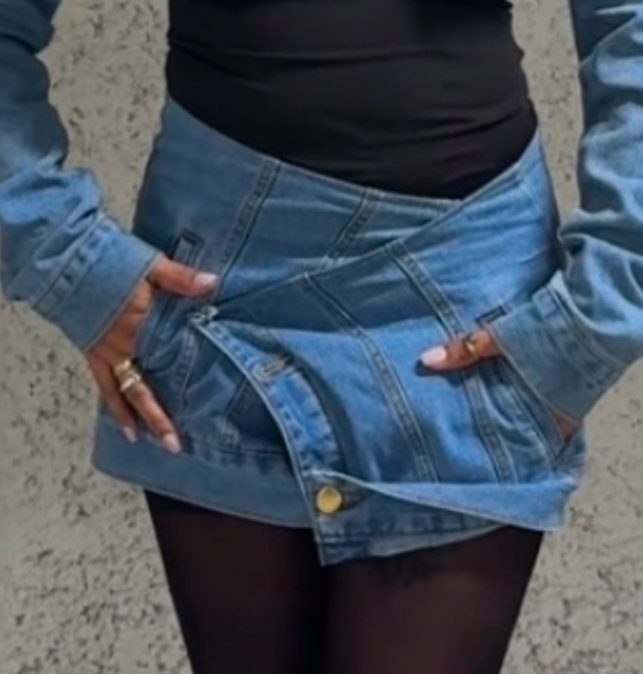 This cropped denim jacket is designed with versatility in mind, effortlessly doubling as a top or a lightweight layer. Made from light-washed, non-stretch denim, it offers a classic fit with a modern twist. Gold accent logo buttons provide a subtle yet elegant detail, making this piece a timeless addition to your wardrobe.